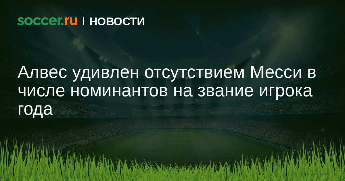 Защитник ПСЖ Дани Алвес, выступавший ранее в рядах «Барселоны», не понимает, почему нападающего каталонцев Лионеля Месси нет в списке претендентов на звание лучшего игрока года по версии ФИФА.