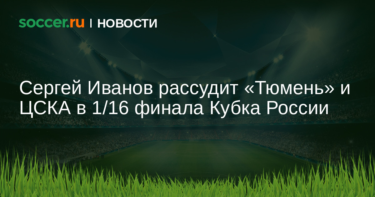 Сергей Иванов назначен главным арбитром на матч 1/16 финала Кубка России «Тюмень» — ЦСКА. Помогать ему будут Дмитрий Березнев и Роман Усачев.