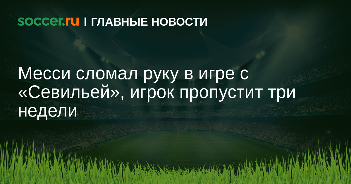 Пресс-служба «Барселоны» сообщила, что нападающий команды Лионель Месси получил перелом руки в матче 9-го тура чемпионата Испании с «Севильей». По предварительным данным, аргентинец пропустит около трех недель.