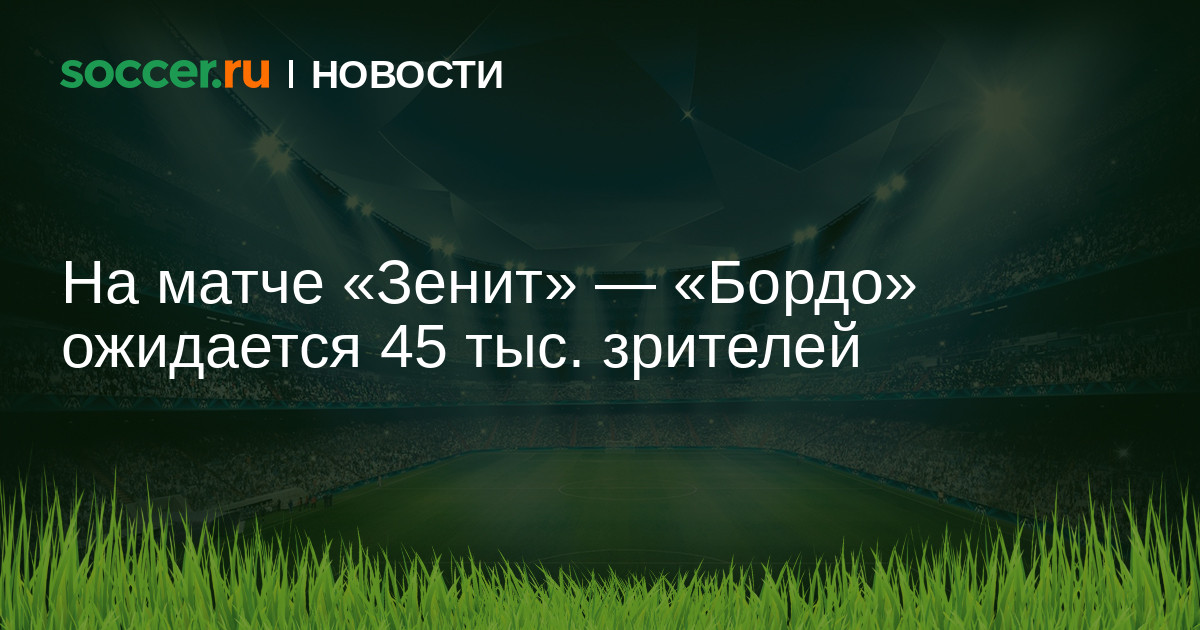 На матче третьего тура группового раунда Лиги Европы «Зенит» — «Бордо» ожидается до 45 тыс. зрителей, гостей поддержат 60 болельщиков.