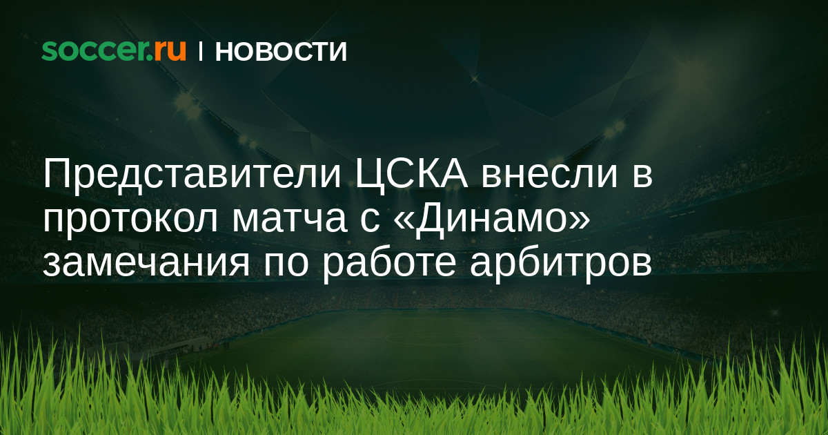Представители ЦСКА после дерби с «Динамо» внесли в итоговый протокол запись с замечаниями по поводу судейства, сообщает газета «СЭ».