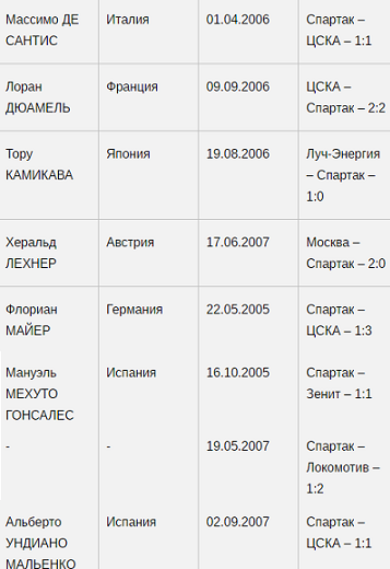 «Спартак» (1-й тайм): Шитов, Боккетти, Комбаров, Миронов, Маслов, Гулиев, Глушенков, Игнатов, Зобнин, Мелкадзе, Роша.