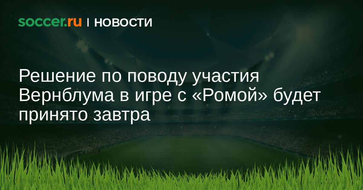 Решение по поводу участия хавбека ЦСКА Понтуса Вернблума в матче с «Ромой», скорее всего, будет принято завтра.