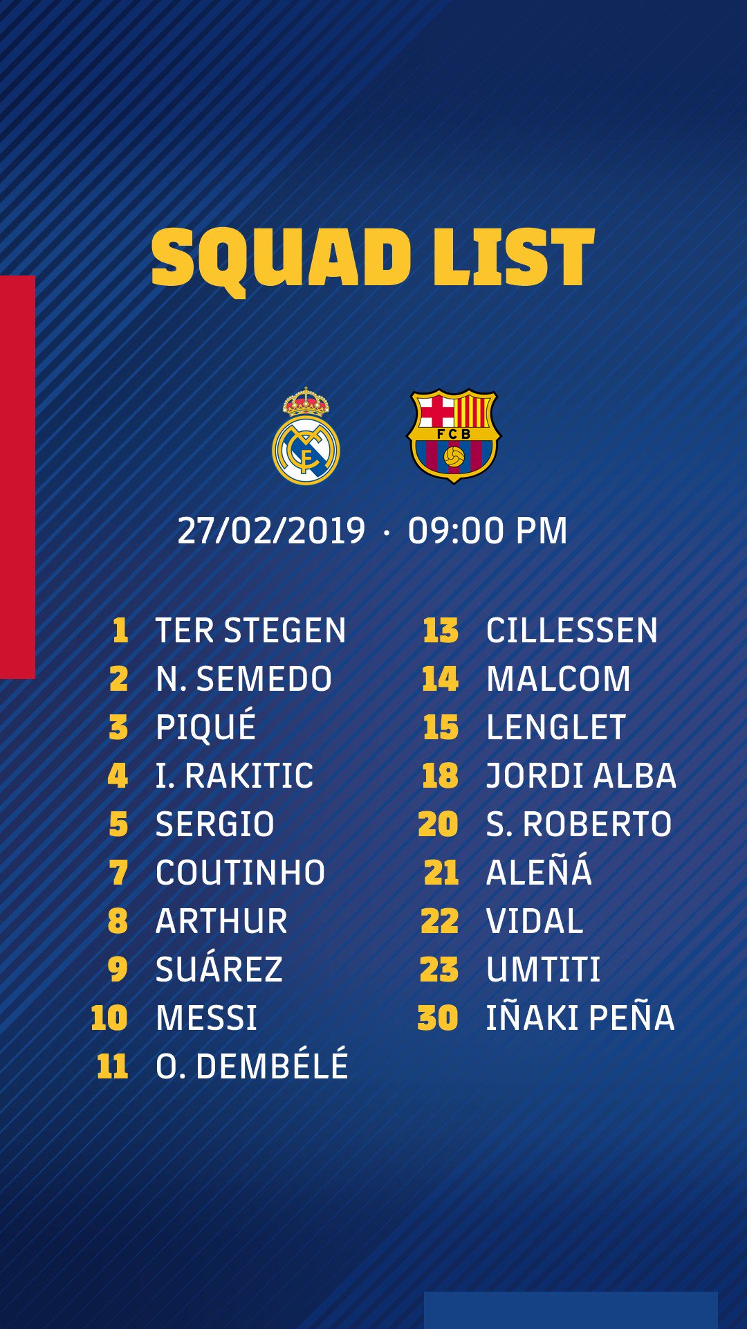 «Барселона» объявила состав на ответный матч против «Реала» в Кубке Испании. В первой игре между этими командами была зафиксирована ничья.