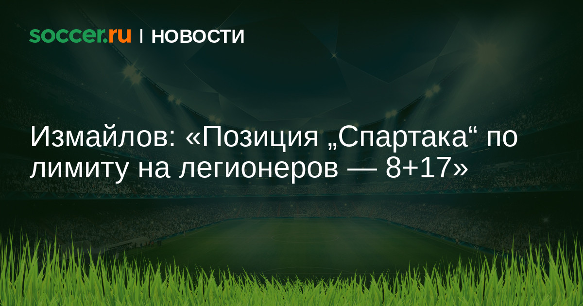 Вице-президент «Спартака» Наиль Измайлов рассказал о позиции московского клуба в вопросе лимита на легионеров.