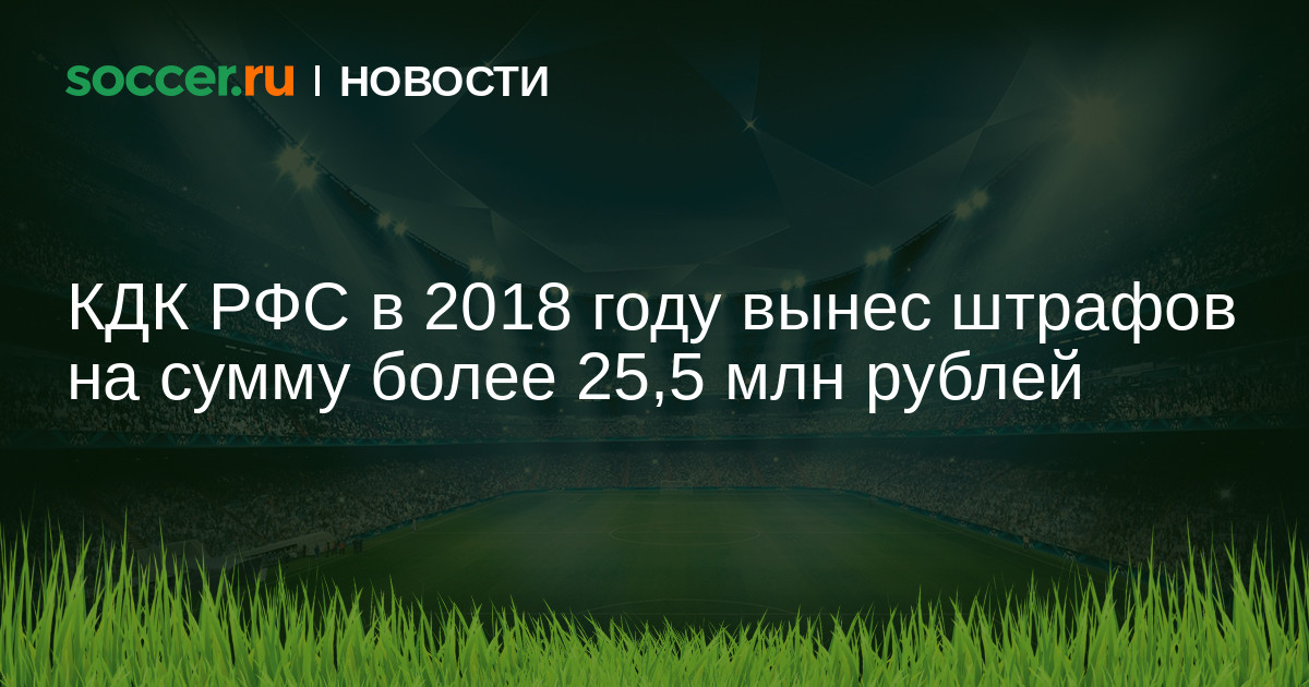 Контрольно-дисциплинарный комитет Российского футбольного союза в прошлом году выписал штрафов на сумму более 25,5 млн рублей.
