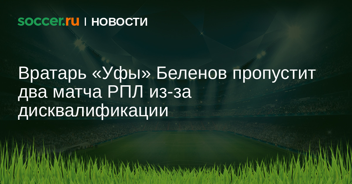 Глава КДК РФС Артур Григорьянц сообщил, что вратарь «Уфы» Александр Беленов получил дисквалификацию на два матча чемпионата России. Голкипер был удален за задержку времени в концовке ответного стыкового матча с «Томью» (0:1), а после финального свистка показал оскорбительный жест болельщикам соперника.