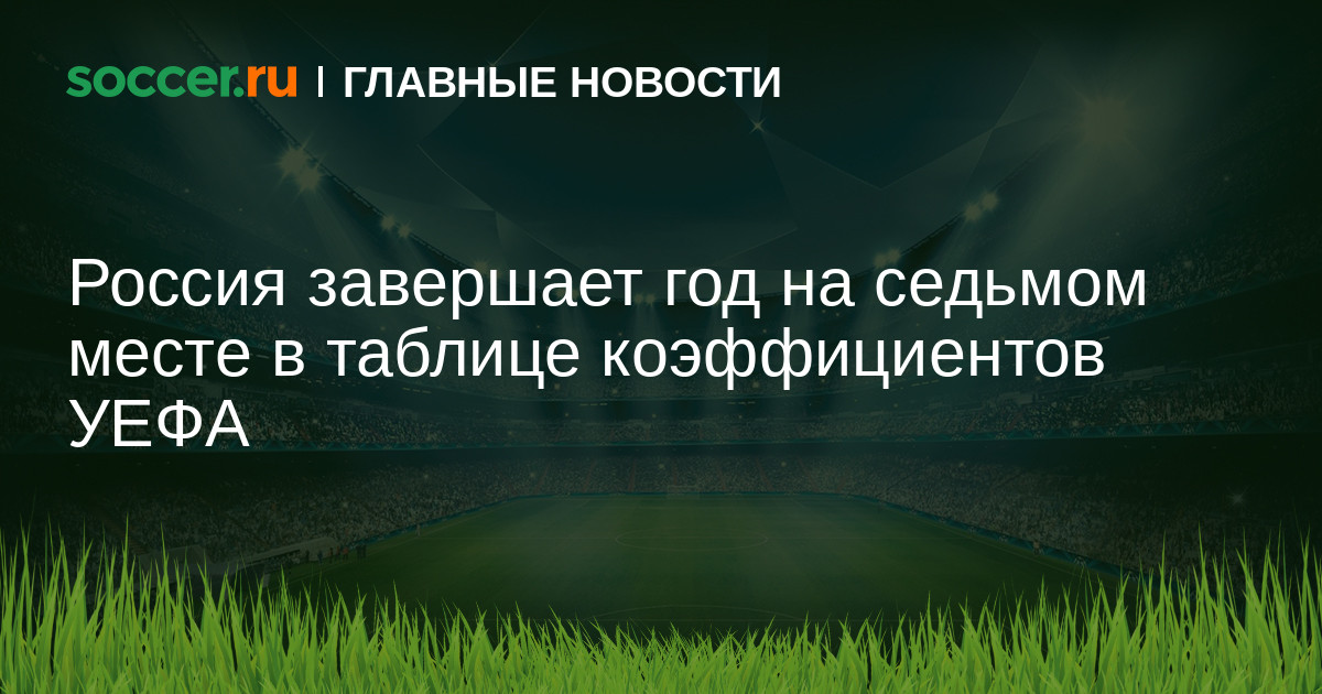 Россия в таблице коэффициентов УЕФА заканчивает год на седьмом месте, имея в своем активе 48,498 балла. На шестом месте расположилась Франция, у которой 50,916 балла.