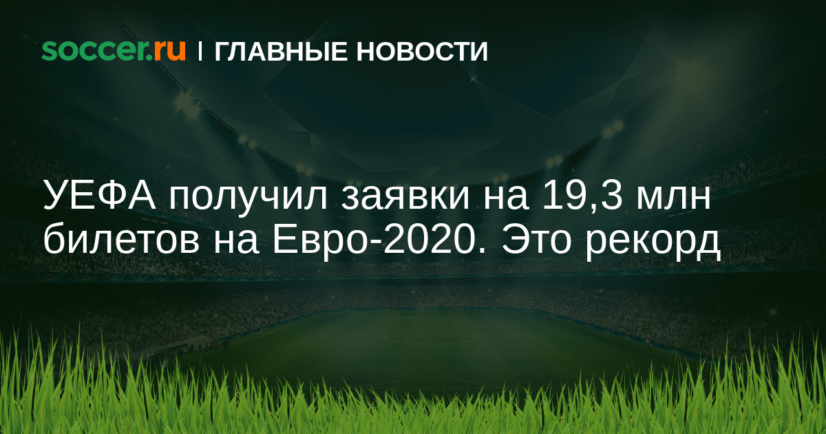 УЕФА получил 19,3 млн заявок на билеты на чемпионат Европы 2020 года. Это рекордное количество запросов. Предыдущий наивысший результат был зафиксирован перед Евро-2016, когда поступило порядка 11 млн заявок.