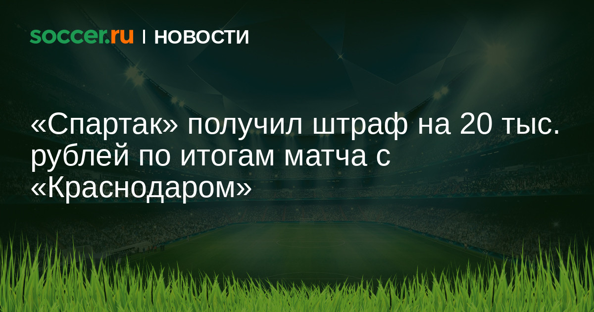 Председатель КДК РФС Артур Григорьянц заявил, что комитет оштрафовал «Спартак» на 10 тыс. рублей по итогам матча против «Краснодара», который прошел в рамках 12-го тура РПЛ.