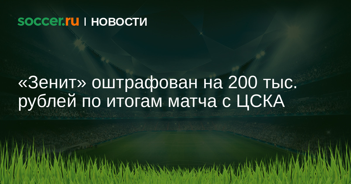 Глава КДК РФС Артур Григорьянц заявил, что комитет оштрафовал петербургский «Зенит» на 200 тыс. рублей по итогам домашнего матча 15-го тура РПЛ против ЦСКА (1:1).