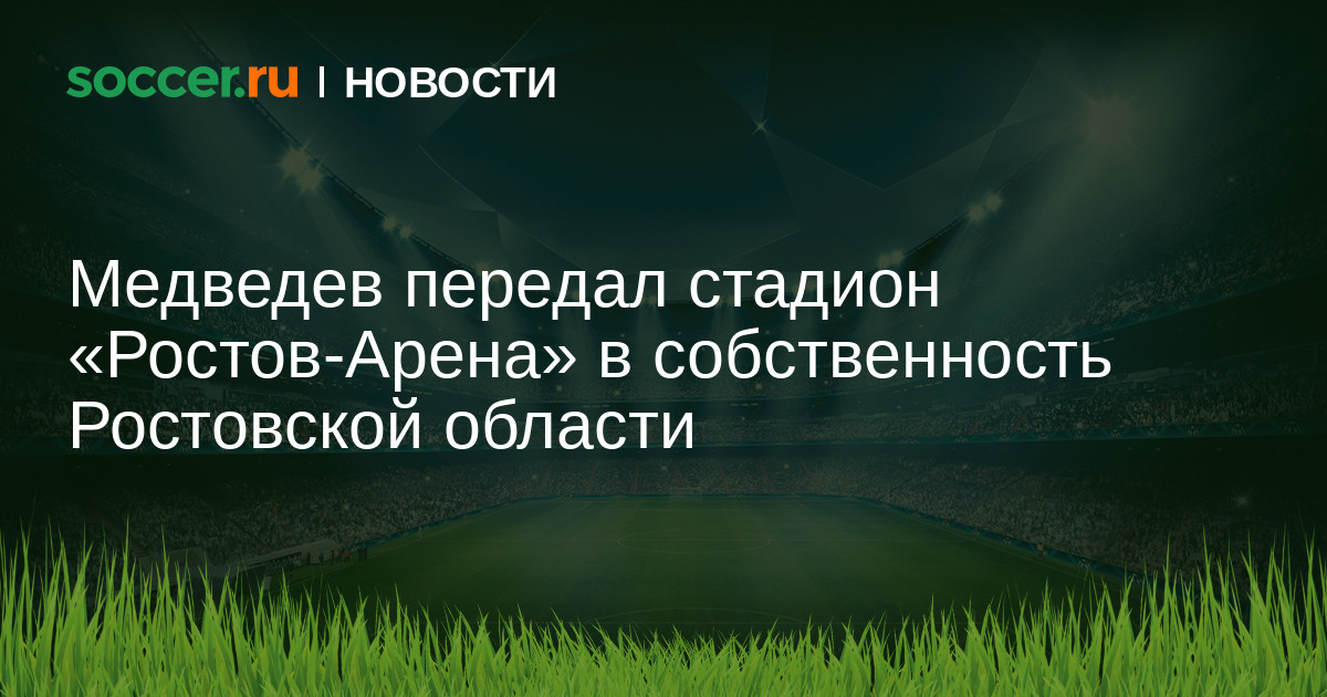 Премьер-министр России Дмитрий Медведев подписал распоряжение о передаче из федеральной собственности в собственность Ростовской области стадиона «Ростов-Арена».