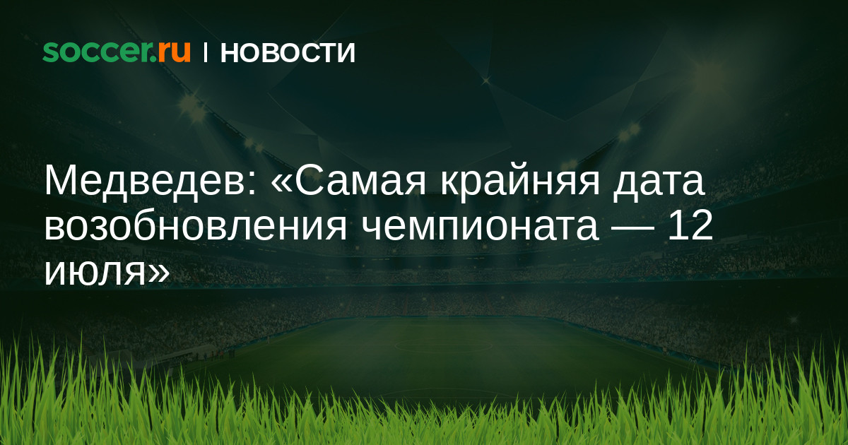 Генеральный директор «Зенита» Александр Медведев считает, что крайней датой возобновления сезона РПЛ является 12 июля.