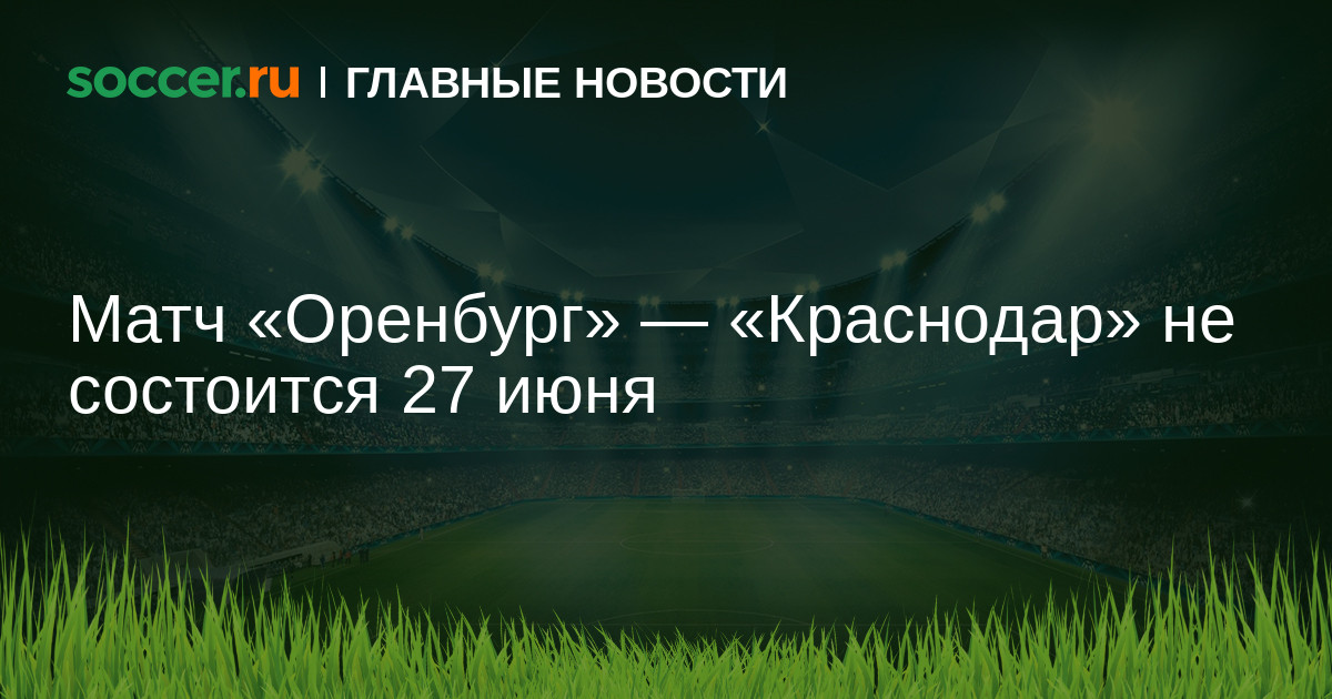 Матч 24-го тура Российской Премьер-Лиги «Оренбург» — «Краснодар» не состоится завтра, 27 июня, сообщает в своем телеграм-канале журналист Нобель Арустамян.