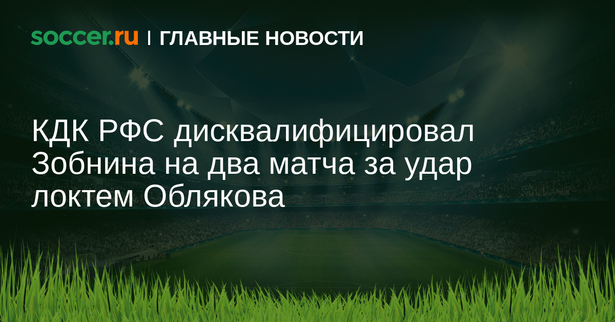 Таким образом, Зобнин пропустит матч 26-го тура РПЛ с «Тамбовом» (4 июля) и встречу 27-го тура с московским «Локомотивом» (8 июля).