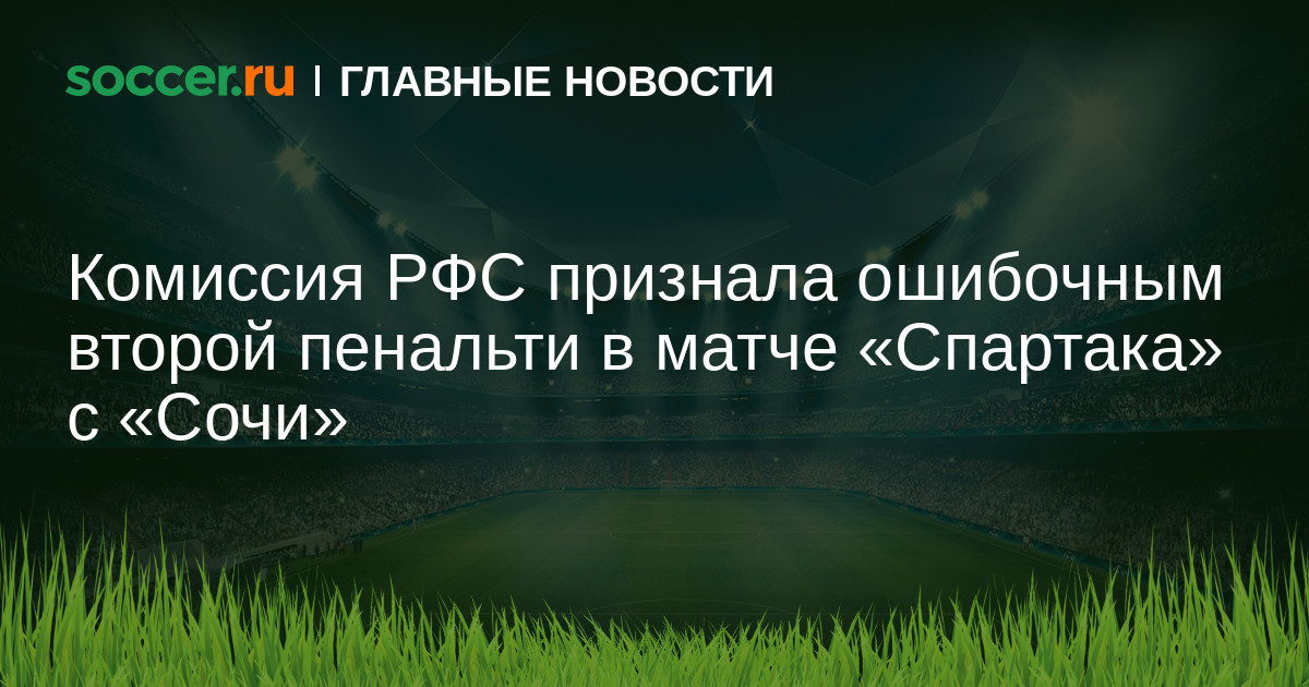Экспертно-судейская комиссия (ЭСК) РФС признала ошибку главного арбитра матча первого тура РПЛ «Спартак» — «Сочи» Василия Казарцева в эпизоде с назначением второго пенальти в ворота красно-белых.
