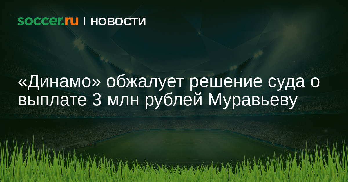 Заместитель генерального директора «Динамо» по правовым вопросам Евгений Морозов заявил, что клуб обжалует решение суда о выплате 3 млн рублей экс-гендиректору команды Евгению Муравьеву.