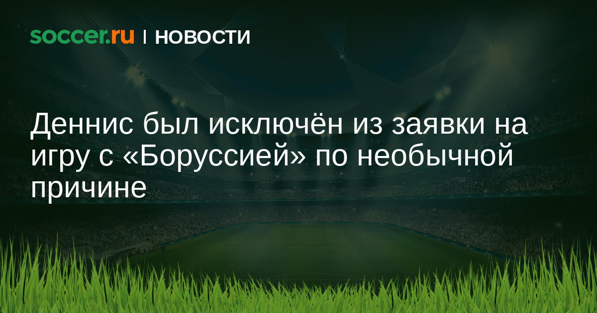 Нападающий «Брюгге» Эммануэль Деннис не попал в заявку команды на матч 4-го тура группового этапа Лиги чемпионов с дортмундской «Боруссией» (0:3).