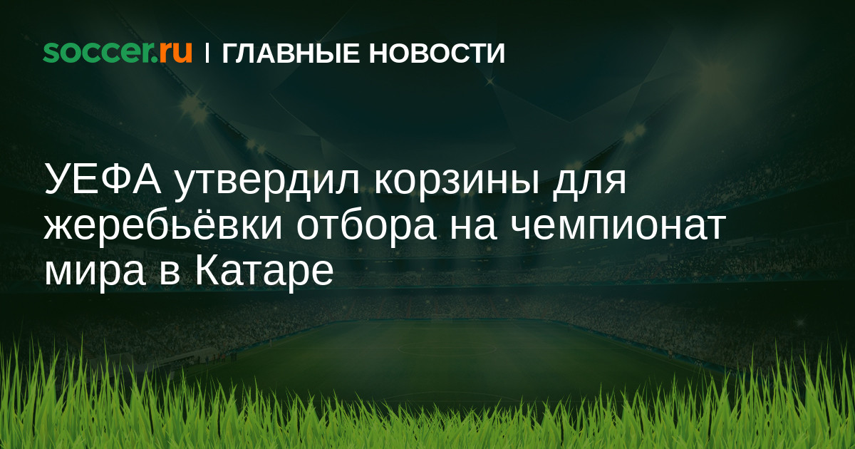 УЕФА утвердил корзины для жеребьёвки отбора на чемпионат мира-2022 в Катаре. Церемония состоится 7 декабря в онлайн-режиме без присутствия представителей ассоциаций-членов в связи с пандемией коронавируса.
