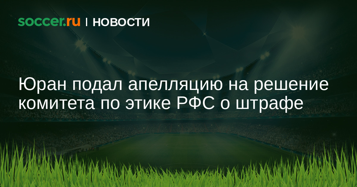 Главный тренер «СКА-Хабаровск» Сергей Юран подал апелляцию на решение комитета по этике РФС оштрафовать его за высказывание о возрасте полузащитника «Спартака» Остона Урунова.