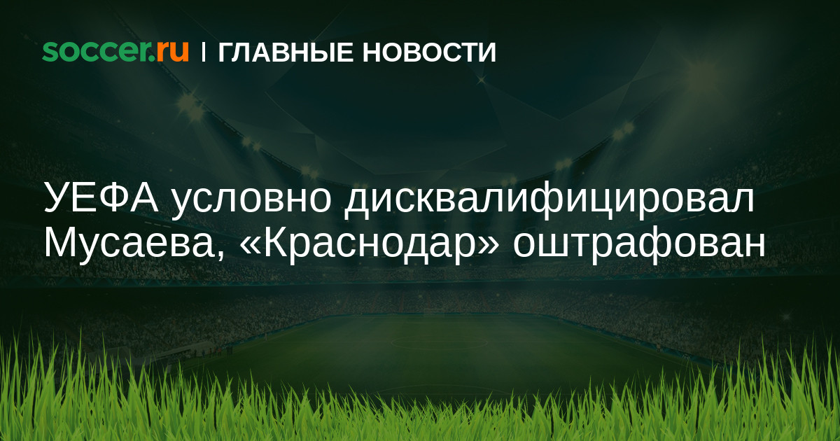 Наставник «Краснодара» Мурад Мусаев дисквалифицирован на один матч условно за несвоевременное начало матча Лиги чемпионов с «Челси» (1:1). Сам клуб оштрафован на 15 тысяч евро.