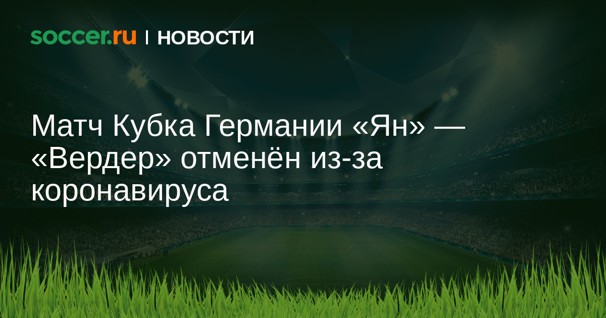 Четвертьфинальный матч Кубка Германии «Ян» — «Вердер» отменён в связи со вспышкой коронавируса в клубе из Регенсбурга.