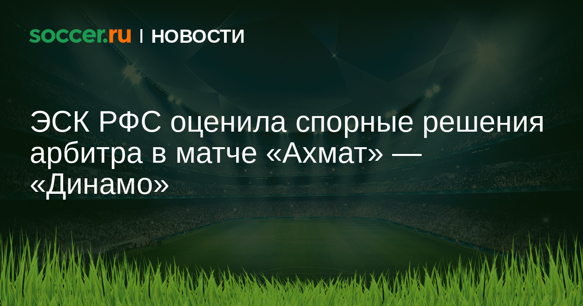 Судья правильно зафиксировал нарушение правил игры со стороны игрока атакующей команды. Решение ЭСК мотивировано тем, что футболист „Ахмата“ Бернард Бериша совершает нарушение правил по неосторожности, атакуя соперника, имевшего полный контроль над мячом, в момент выполнения им передачи вратарю. Игрок „Динамо“ Иван Ордец теряет равновесие и промахивается мимо мяча в результате именно этого игрового действия, что послужило причиной остановки игры судьёй», — говорится в сообщении, опубликованном на сайте РФС.