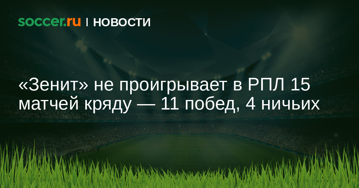 Петербургская команда продлила беспроигрышную серию в чемпионате России до 15 игр. В последний раз «Зенит» проигрывал в РПЛ в марте – «Рубину» (1:2).
