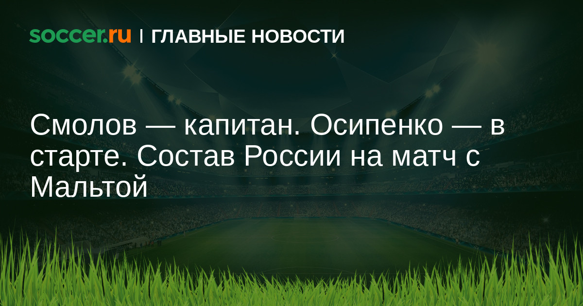 Сборная России объявила стартовый состав на матч отбора ЧМ-2022 против команды Мальты.
