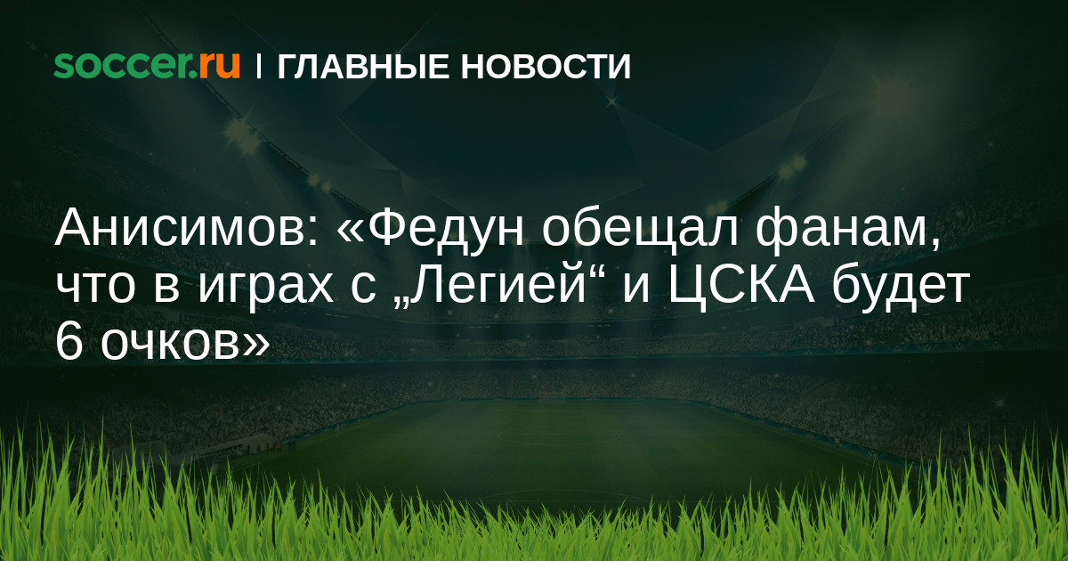 И второе. Я знаю, и мне не один человек это говорил, что Леонид Арнольдович пообещал болельщикам, что в матчах с «Легией» (0:1) и ЦСКА будет шесть очков. Шесть уже невозможно. Поэтому будем надеяться, что с ЦСКА будет три, и таким образом Леонид Арнольдович на 50 процентов выполнит своё обещание.