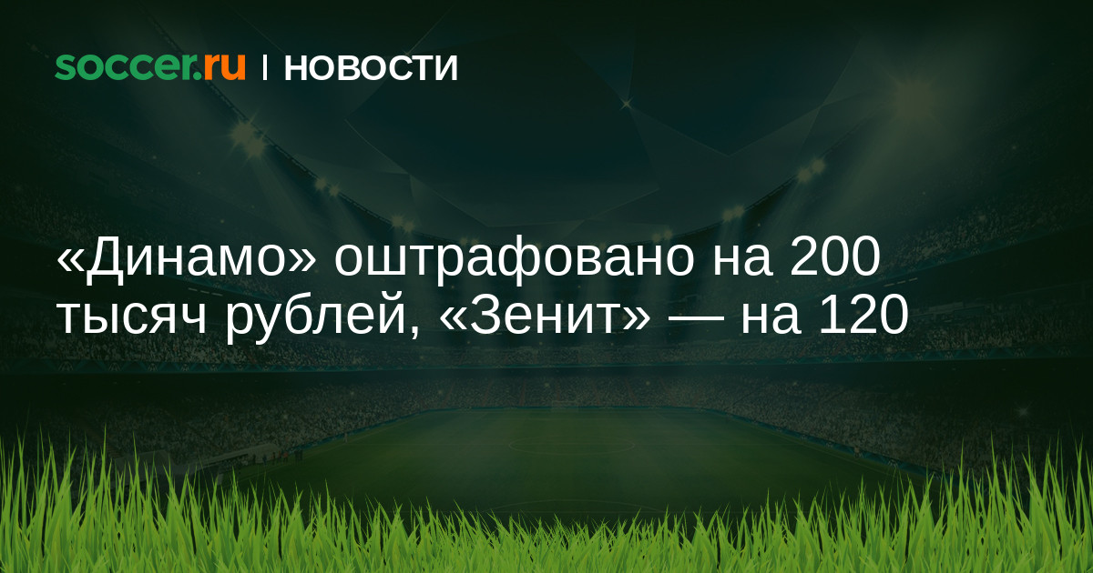 - В соответствии со статьей 101 Дисциплинарного регламента РФС и пунктом 22 Приложения № 1 Дисциплинарного регламента РФС за необеспечение безопасности на стадионе, повлекшее нарушения зрителями общественного порядка – оштрафовать ФК «Зенит» г. Санкт-Петербург на 100 000 (сто тысяч) рублей.