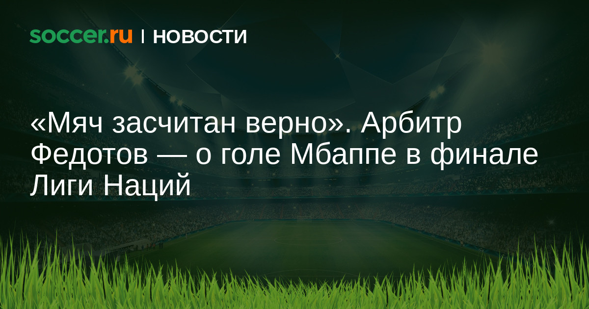 Российский арбитр Игорь Федотов дал свою оценку эпизоду с голом нападающего сборной Франции Килиана Мбаппе в финале Лиги Наций против Испании (2:1).