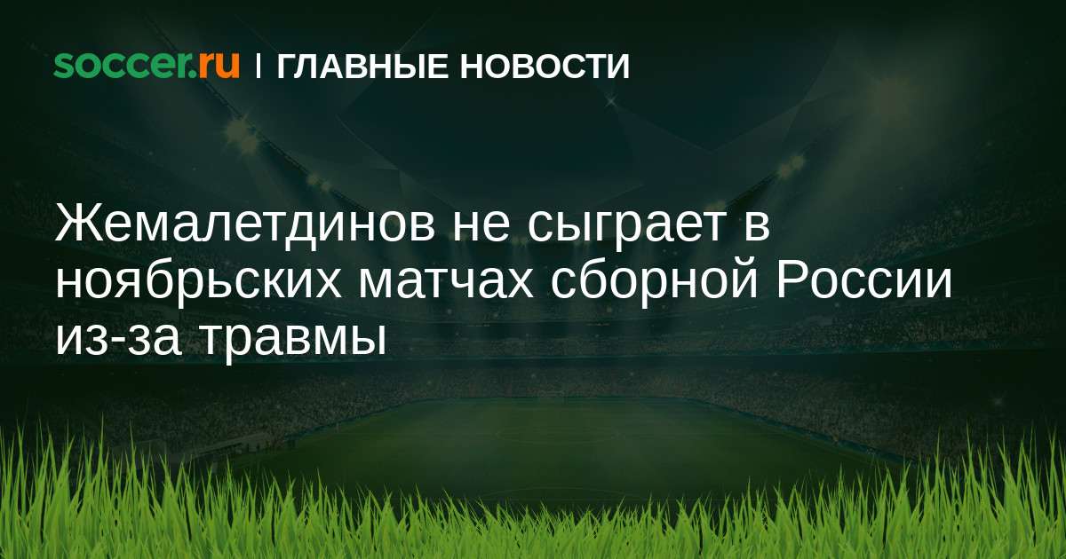Полузащитник «Локомотива» Рифат Жемалетдинов не сыграет в ноябрьских матчах сборной России из-за травмы, сообщает пресс-служба национальной команды, ссылаясь на слова старшего врача Владимира Хайтина: