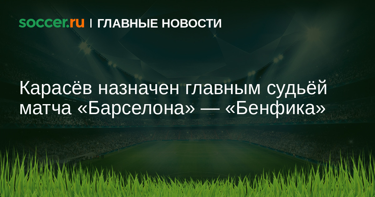 Россиянин Сергей Карасёв назначен главным арбитром встречи 5-го тура групповой стадии Лиги чемпионов между «Барселоной» и «Бенфикой».