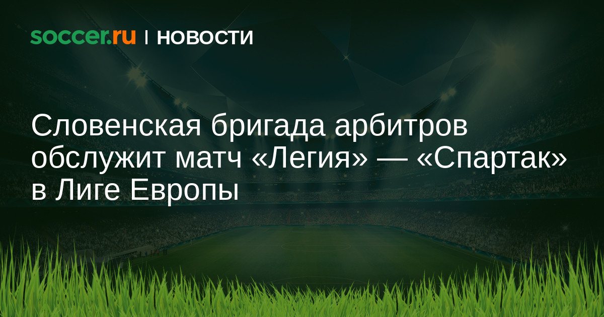 Словенская бригада арбитров обслужит матча группового этапа Лиги Европы между «Легией» и «Спартаком».