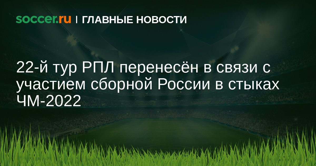 24 марта 2022 года сборная России будет участвовать в стыковом турнире за выход на чемпионат мира-2022: в полуфинальном матче команда Валерия Карпина примет в «Лужниках» сборную Польши, а если выйдет в финал, 29 марта встретится в Москве с победителем пары Швеция – Чехия.