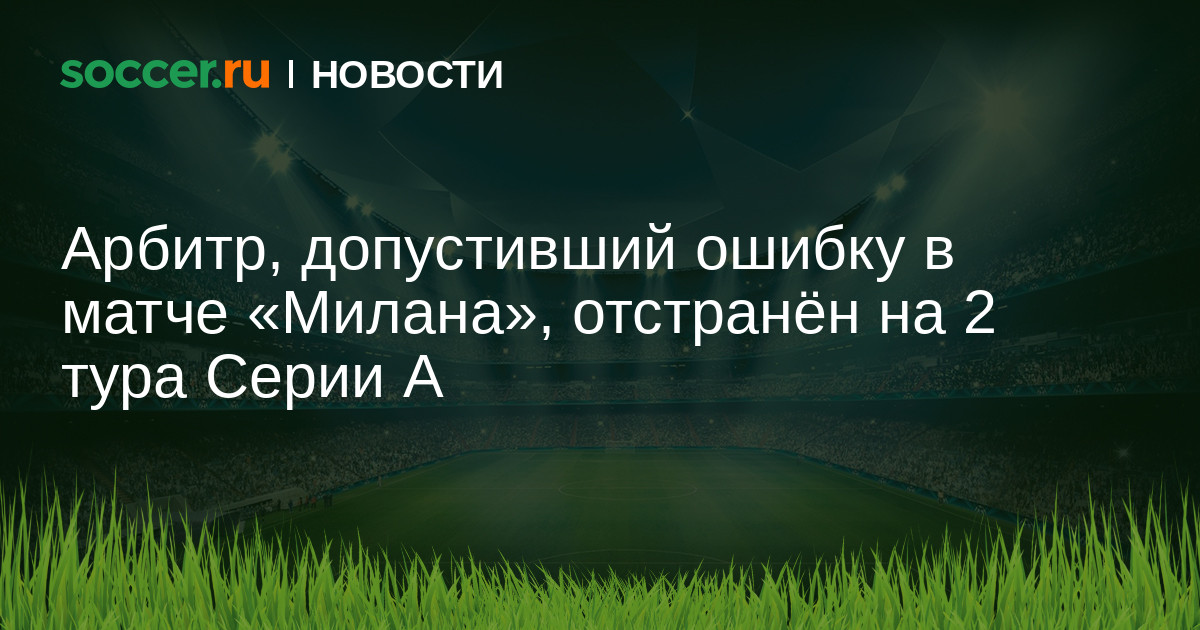 Главный арбитр матча 22-го тура Серии А «Милан» — «Специа» (1:2) Марко Серра отстранён от судейства на два ближайших тура чемпионата Италии.
