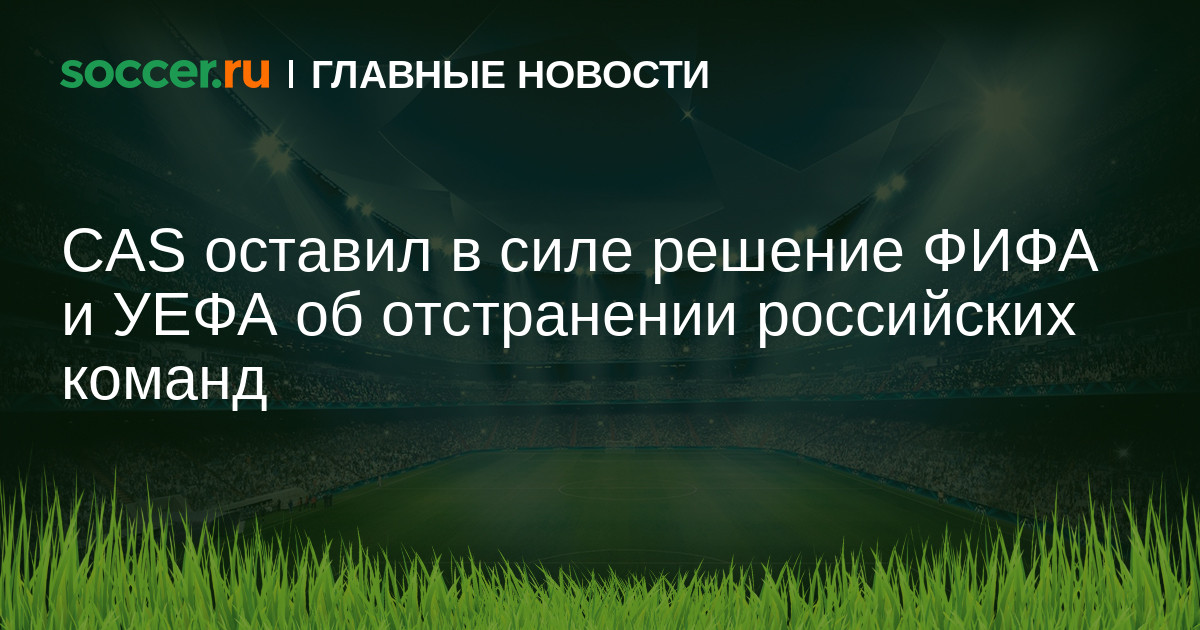 Спортивный арбитражный суд (CAS) отклонил апелляцию РФС по поводу решения ФИФА и УЕФА отстранить сборную России по футболу и отечественные клубы от участия в международных соревнованиях.
