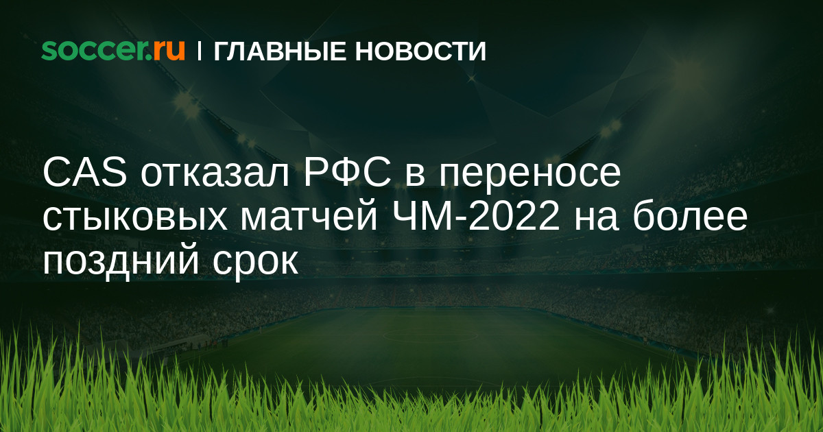 Спортивный арбитражный суд в Лозанне (CAS) принял решение отказать в удовлетворении ходатайства РФС о принятии обеспечительных мер в виде переноса стыковых матчей за право сыграть на чемпионате мира в Катаре на более поздний срок.