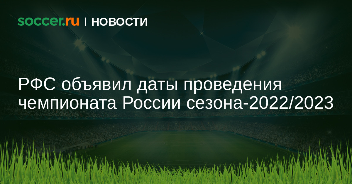 Новый сезон чемпионата России начнется 17 июля 2022 года и завершится 3 июня 2023 года.