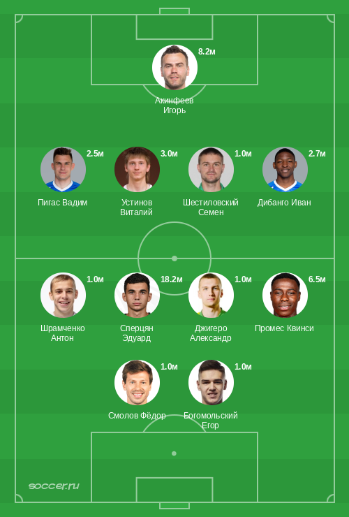 В ней оказались как представители РПЛ (Игорь Акинфеев, Квинси Промес, Эдуард Сперцян и Фёдор Смолов), так и футболисты из чемпионата Беларуси.