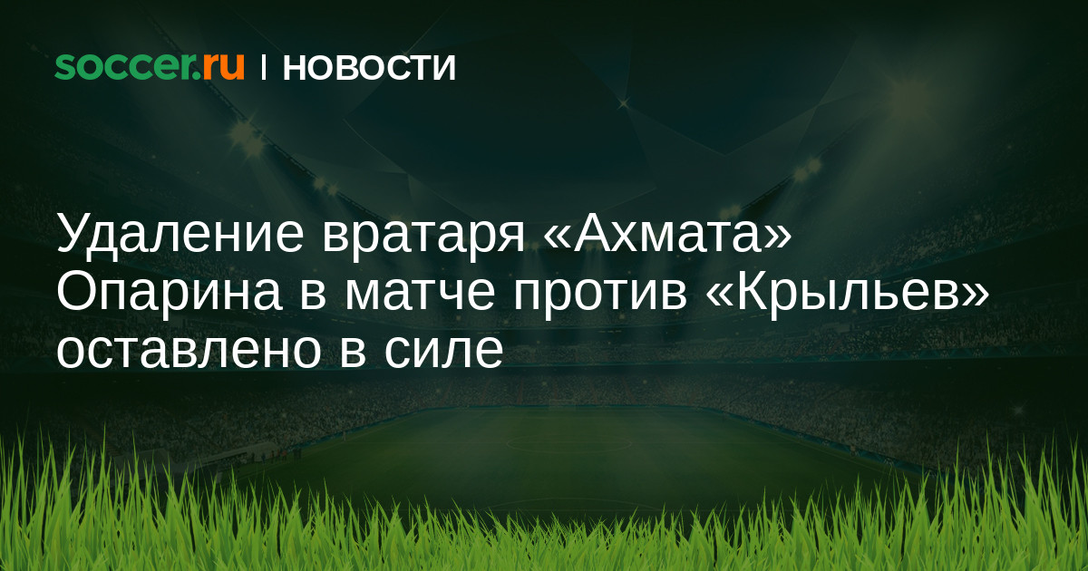 Контрольно-дисциплинарный комитет Российского футбольного союза (КДК РФС) не стал отменять удаление вратаря грозненского «Ахмата» Михаила Опарина, полученное им в матче с самарскими «Крыльями Советов».
