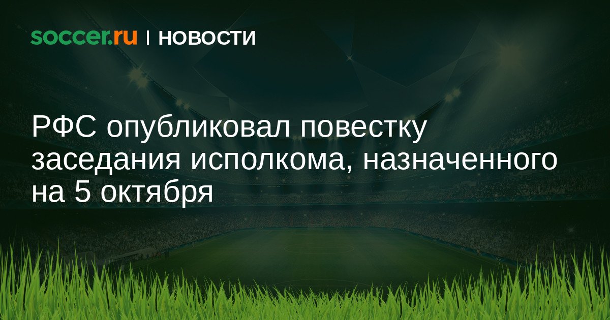 РФС опубликовал повестку заседания исполкома организации. Встреча состоится 5 октября в 12:00 по московскому времени.