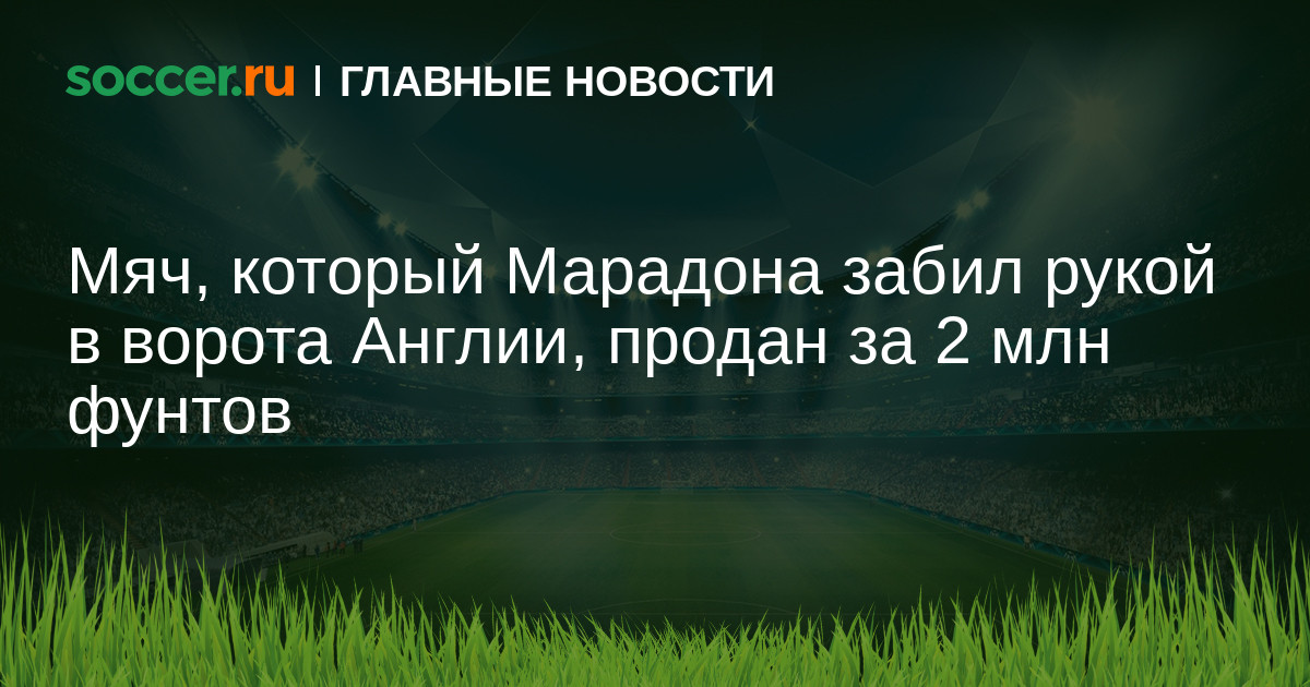 На лондонском аукционе Graham Budd Auctions в среду был продан мяч, который аргентинец Диего Марадона отправил рукой в ворота Англии в легендарном матче 1/4 финала ЧМ-1986. Итоговая цена лота составила 2 млн фунтов стерлингов.
