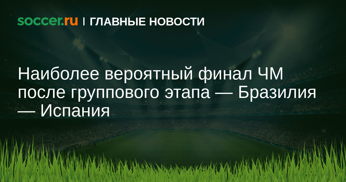 Статистический портал Gracenote спрогнозировал шесть наиболее вероятных финалов чемпионата мира в процентном соотношении после группового этапа.