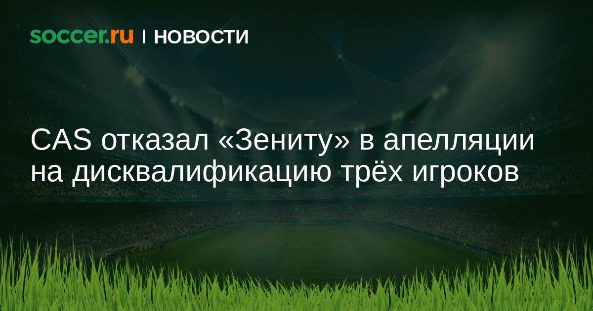 Спортивный арбитражный суд в Лозанне отклонил апелляцию «Зенита» на решение КДК РФС о шестиматчевой дисквалификации трех игроков петербуржцев на игры Кубка России. Речь идет о Малкоме, Вильмаре Барриосе и Родригао. Это решение вынесено по итогам кубкового матча «Зенита» против «Спартака», в котором произошла массовая драка. Три игрока москвичей — Александр Соболев, Александр Селихов и Шамар Николсон — получили аналогичное наказание.
