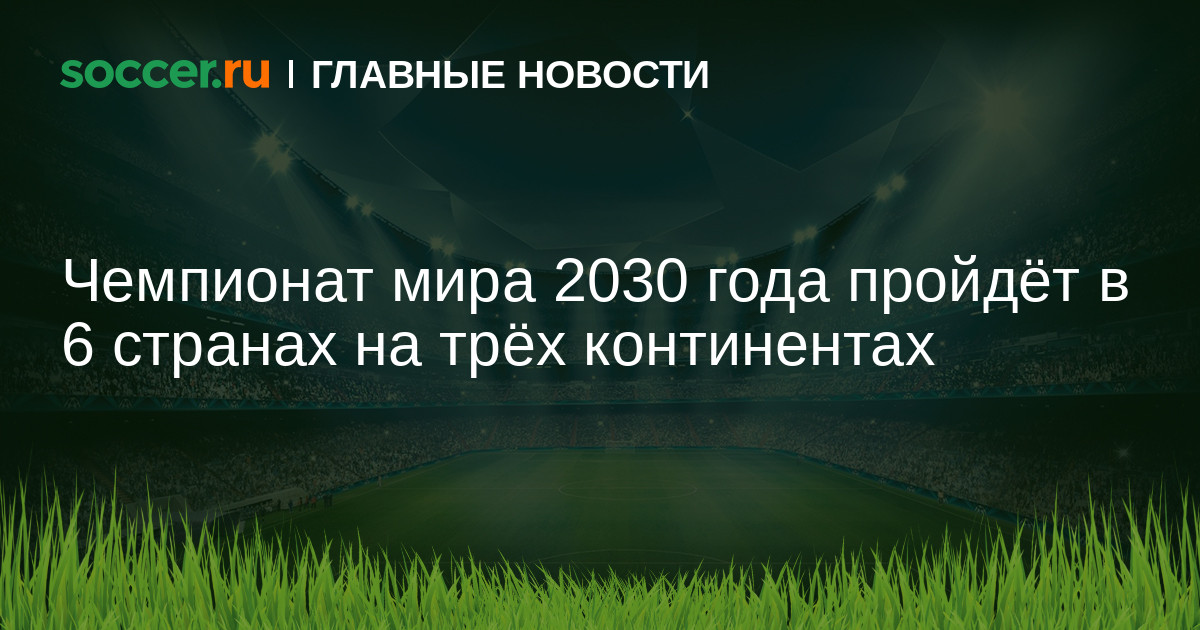 Чемпионат мира по футболу 2030 года пройдёт в шести странах на трёх континентах. Об этом сообщает официальный сайт ФИФА.