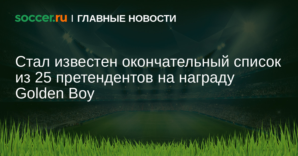 Опубликован финальный список кандидатов из 25 человек на получение приза Golden Boy — лучшему молодому футболисту года в Европе.