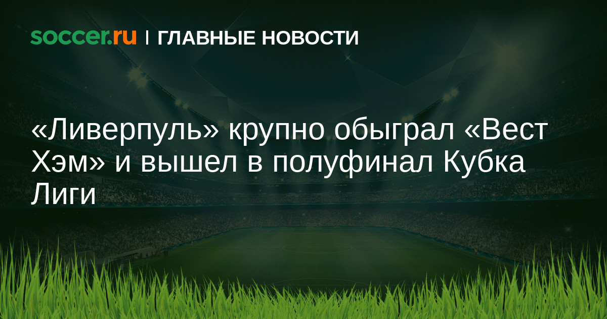 «Ливерпуль» выиграл у «Вест Хэма» в матче 1/4 финала Кубка Английской Лиги (5:1).