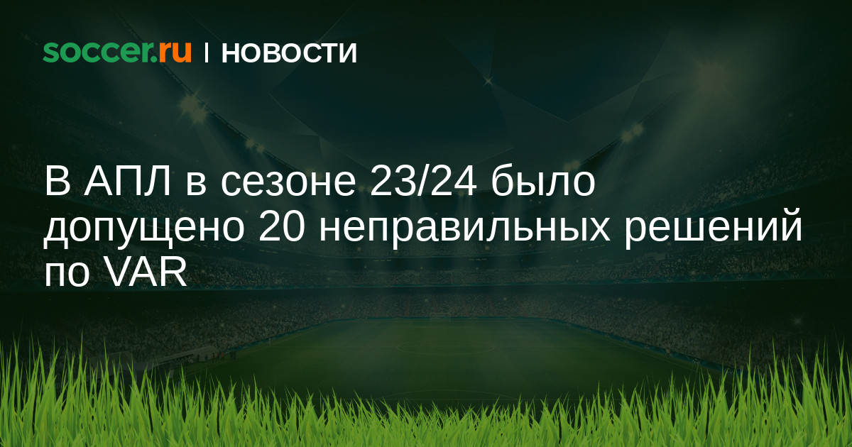 Английская Премьер-лига признала, что в нынешнем сезоне было принято 20 неправильных решений по VAR.